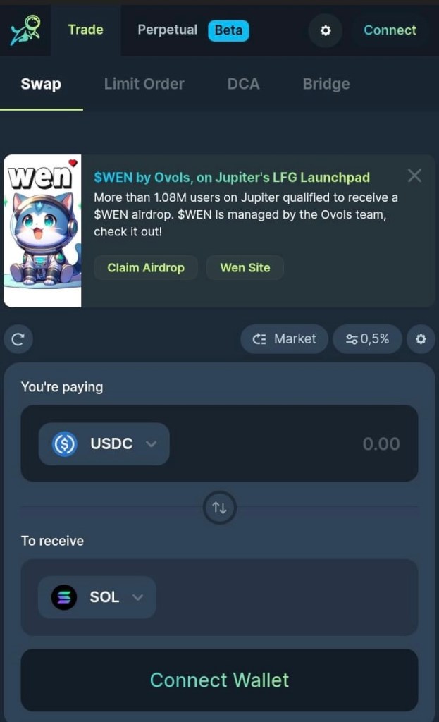 Also, and we cannot stress this enough, absolutely ignore any NFTs you may receive and don’t look for ‘WEN’ on Google because those are scams. The only safe way to do it is by linking to the Jupiter Aggregator (Jup.ag on Solflare, presuming it’s the same on any other Solana wallet).