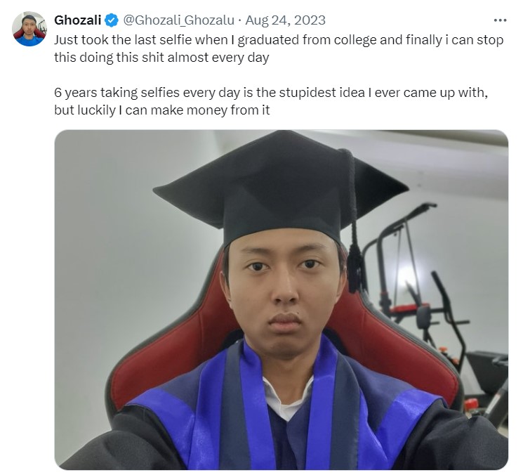 His name is Sultan Gustaf Al Ghozali and he minted NFTs of pictures he took of himself every day for five years.